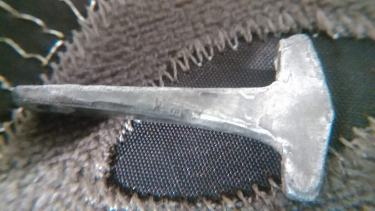 Beskrivelse: Torshammer et hengesmykke - en amulett Årstall: 700-1000-årene Tidsepoke: Vikingtid Materiale: Sølv Lengde: 26mm Bredde: 15mm Vekt: 3-4 gram Funnet av: Frode Andre Ulvær Dato: 25 September 2015 Fylke: Telemark Kommune: Porsgrunn Type terreng: Dyrket mark Innlevert til: Fylkesarkeologen i Telemark fylkeskommune.Detaljer: