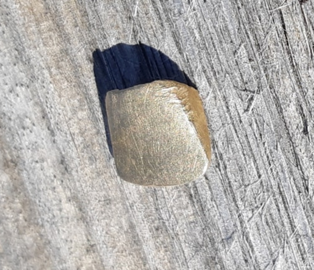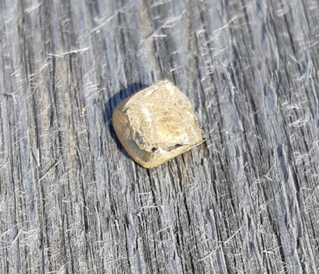 Beskrivelse: Gulltann - en tann av gull - funnet ute på jorde.