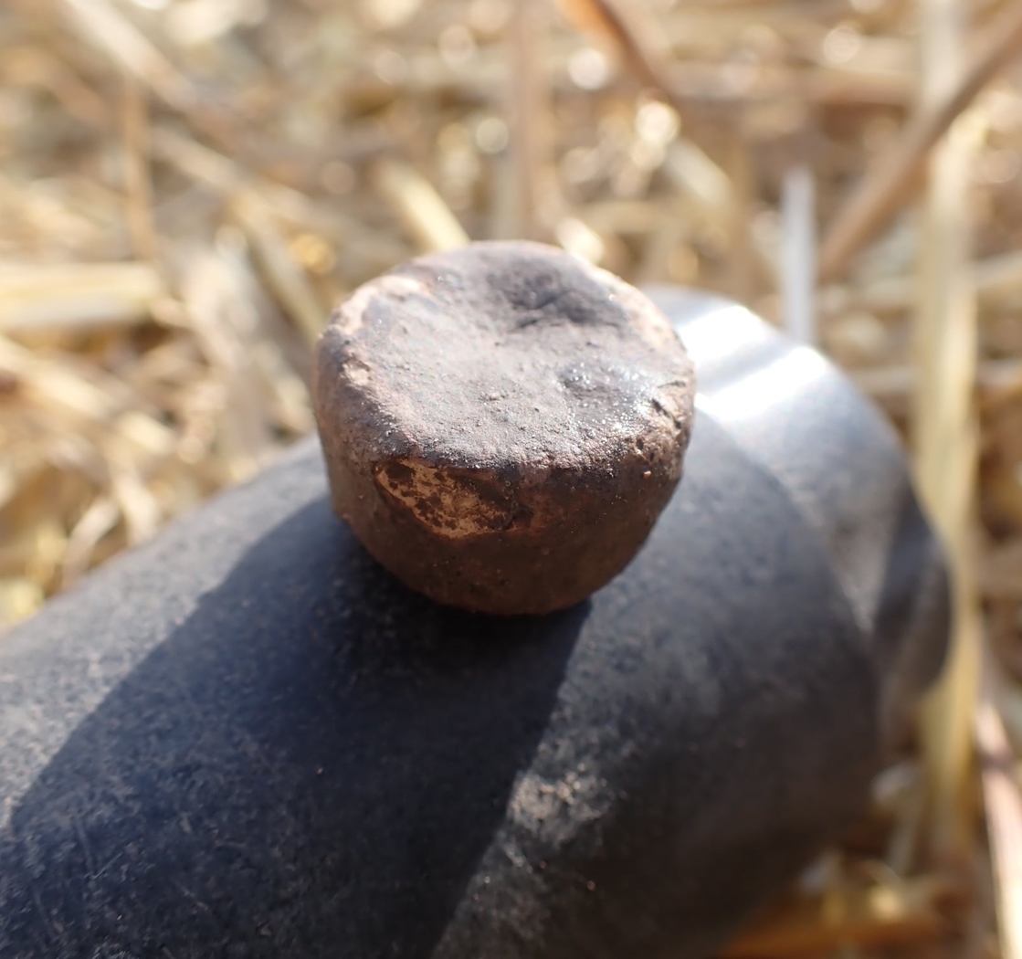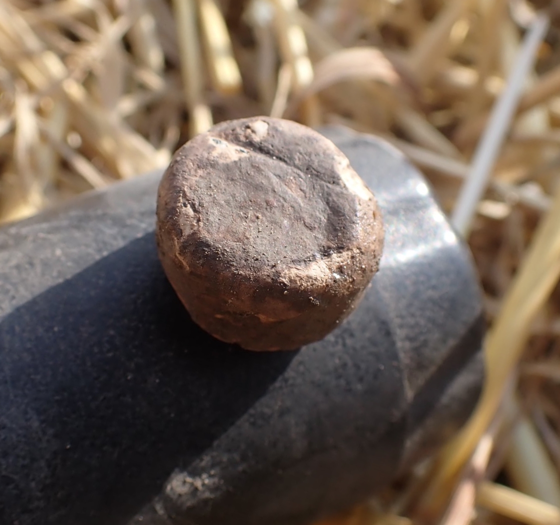 Beskrivelse: Vektlodd av bly, rundt flatt sylindrisk form. Materiale: Bly Høyde: 10 mm Diameter: 16 mm.Ø. Vekt: 22,2 gram Funnet av: Mikkel Killingmoe Christensen Dato: 10 august 2021 Fylke: Østfold i Viken Kommune: Fredrikstad Type terreng: Dyrket mark Innlevert til: Fylkesarkeologen i Viken fylkeskommune.Detaljer: