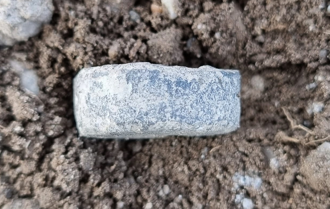 Beskrivelse: Sylindrisk formet vektlodd. Tidsepoke: Vikingtid - middelalder Materiale: Kobberlegering Bredde: 20 mm Tykkelse: 9 mm Vekt: 15,4 gram Funnet av: Vegard Høystad-Lunna Dato: 3 mai 2022 Fylke: Innlandet Kommune: Ringsaker Type terreng: Dyrket mark Innlevert til: Fylkesarkeologen i Innlandet fylkeskommune.Detaljer:
