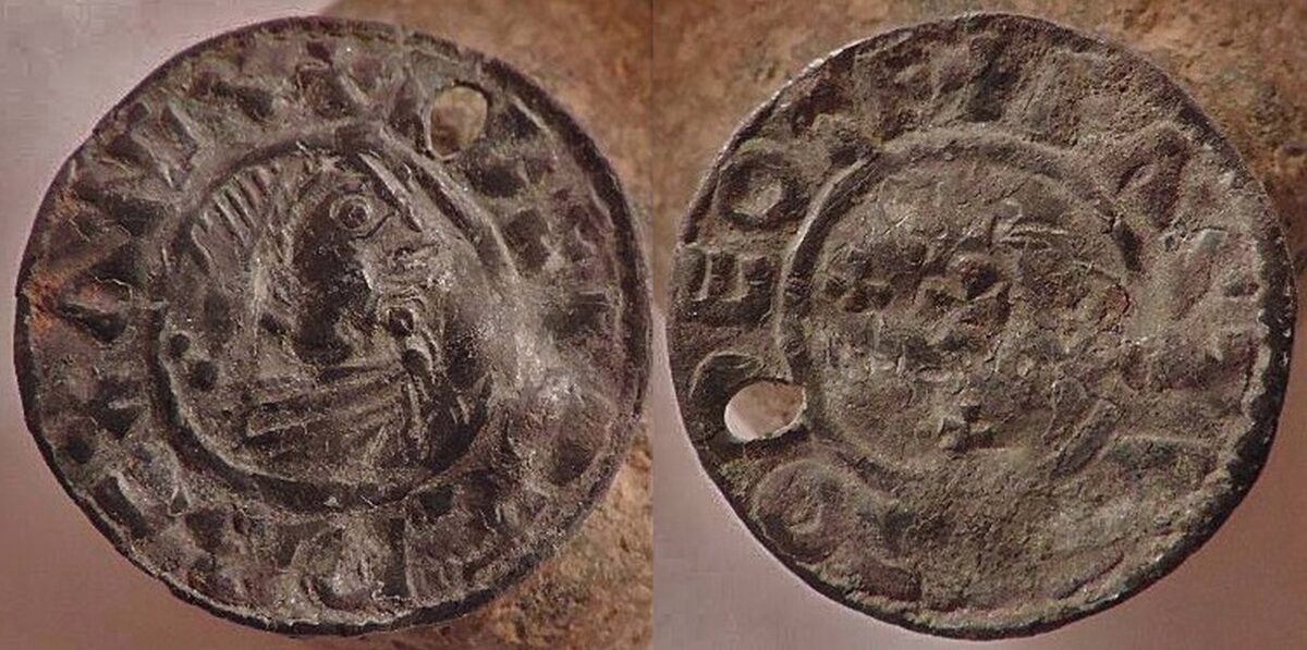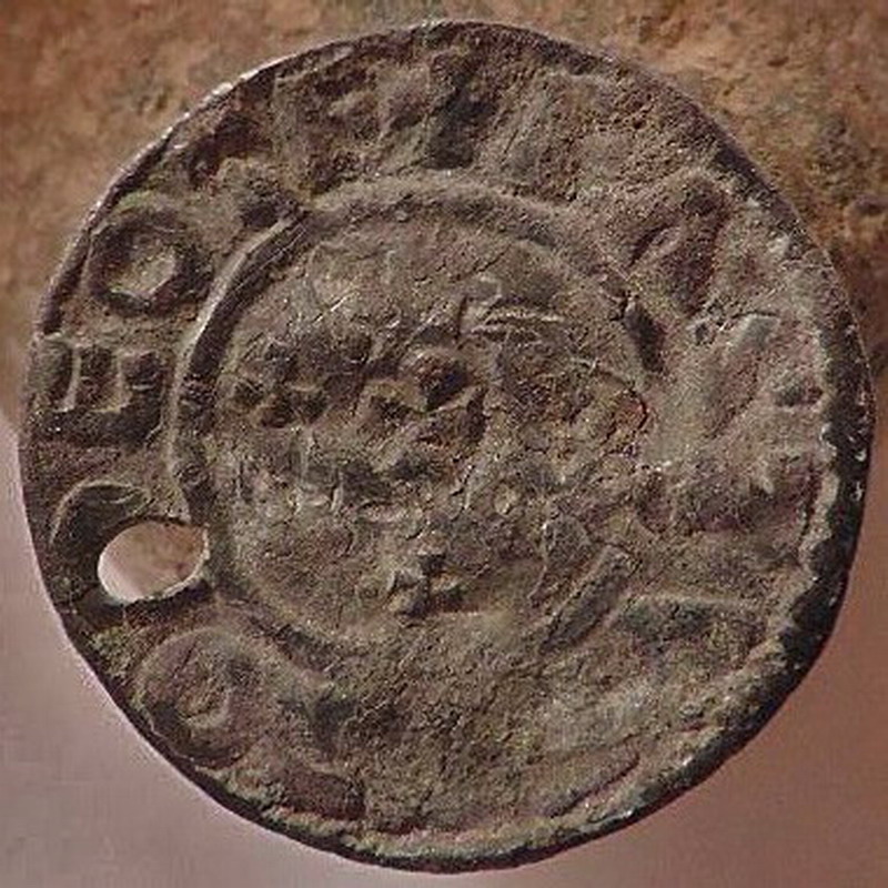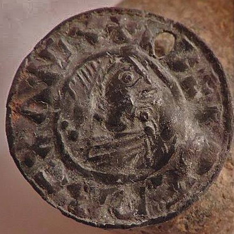Beskrivelse: Last Small Cross type Årstall: 1009-1017 Tidsepoke: Late Anglo-Saxon period (924-1066) Myntherre: Ethelred the Unready (Den Rådville) Tittel: Konge (978-1016) Land: England Myntsted: Thetford Materiale: Sølv Diameter: 20 mm Advers: ✠ EDELRED REX ANG(L) Revers: ✠ FASTV.. M O DEOTF Annen info: Spink 1154a. Perforert. En variant med høyrevendt portrett. Denne mynten har også 4 ekstra kors på reversen som er uvanlig. Funnet av: Kenny Hansen Dato: 2013 Fylke: Hedmark Kommune: Elverum Type terreng: Dyrket mark Innlevert til: FA HedmarkDetaljer: