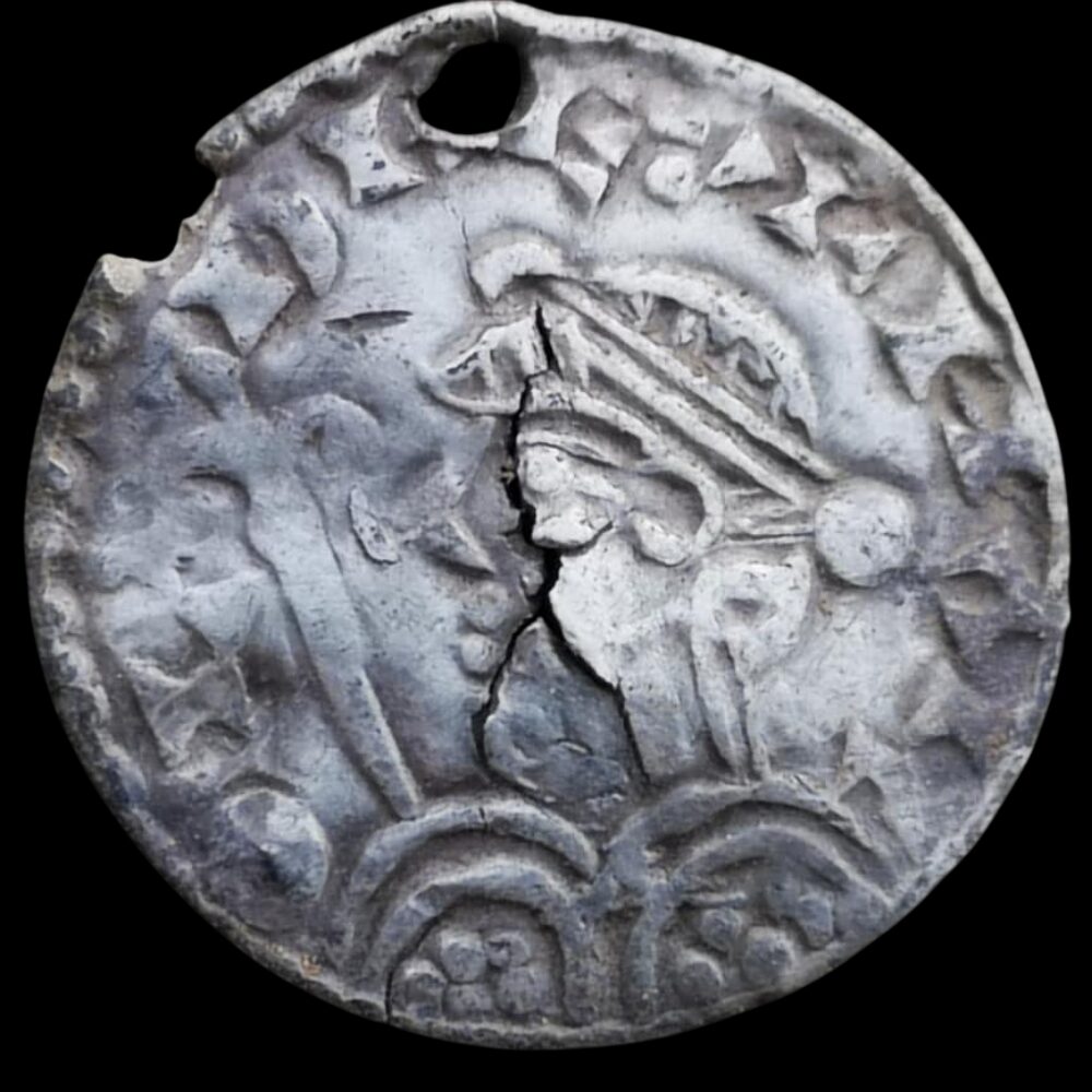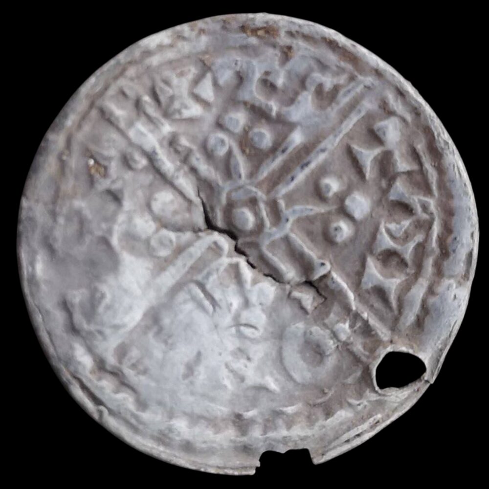 Beskrivelse: Fleur-De-Lis type Årstall: 1038-1040 Tidsepoke: Late Anglo-Saxon period (924-1066) Myntherre: Harold I Tittel: Konge (1035-1040) Land: England Materiale: Sølv Diameter: 17 mm Vekt: 0,94 gram Advers: ✠ HAROLD RE Revers: ✠ ..STAN ON... Annen info: Perforert Funnet av: Terje Saale Sande Dato: 01-09-19 Fylke: Hedmark Type terreng: Dyrket mark Innlevert til: FA HedmarkDetaljer: