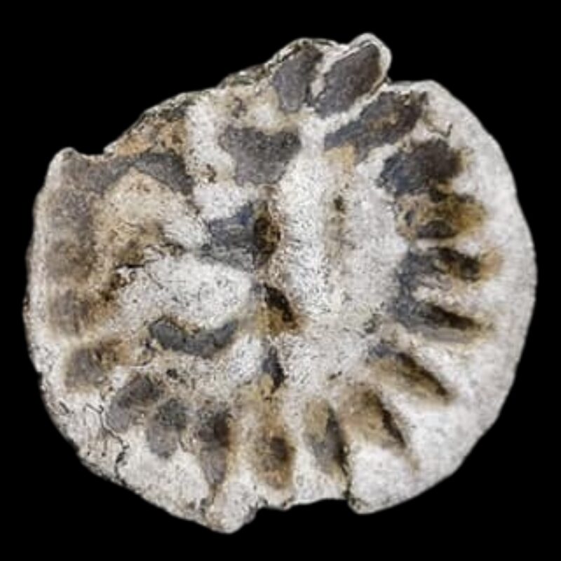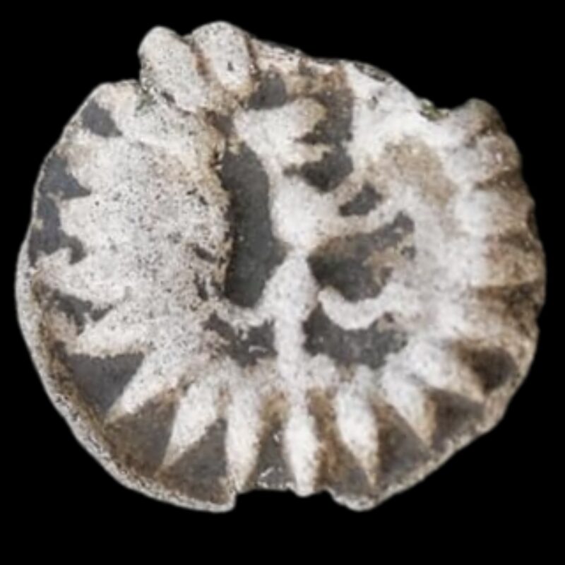 Beskrivelse: Brakteat utbrakt i hulpenningsform med strålerand - Den norske løve - På bakgrunn av vekt kan dette være en 2 penning.